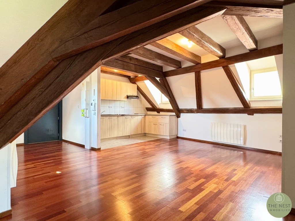 A Kaysersberg, au 3ème et dernier étage d'un bel immeuble classé à l'inventaire des ABF du XVIème siecle et complètement réabilité, nous vous proposons un très bel appartement F2/3 de 49m² Carrez (62,85m² au sol).